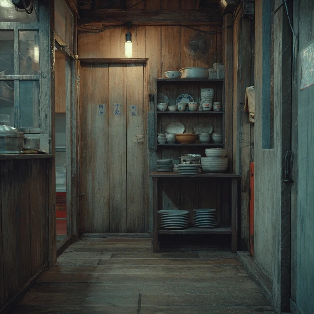 그릇소리가 들리는 좁은 인접방,