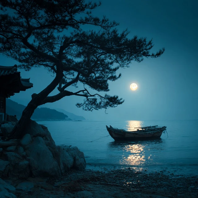 그 앞에 고요히 놓여 있는 녹슨 목선,